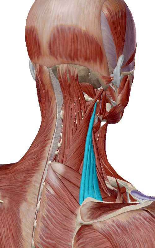 今回は、右肩が前下方に変位していて肩甲骨周囲に痛みを感じることから、肩甲骨と頸椎及び胸椎を繋ぐ筋肉である板状筋・肩甲挙筋・菱形筋と、頸椎と肋骨を繋ぐ斜角筋に問題がある可能性が高いと考えました。