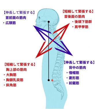 この状態で筋肉は頭を支えなくてはいけないため、筋肉は常時緊張し肩こりに発展します。